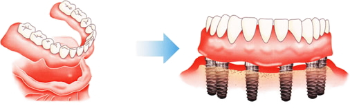(「ブリッジ」や「入れ歯」では咬む力を支える歯を増やしたということにはなりません。「従来の治療とインプラント治療」を参照してください。)